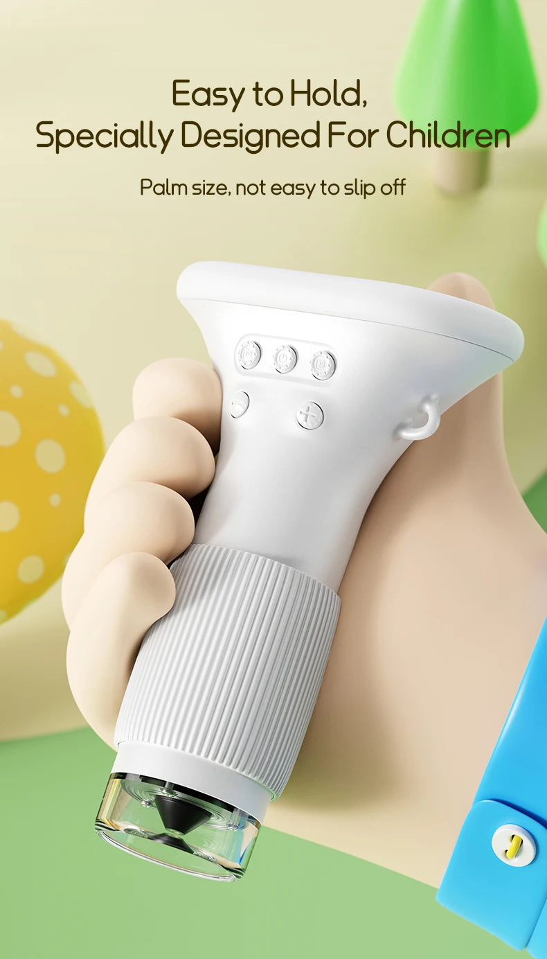 המיקרוסקופ תוכנן במיוחד לידיים של ילדים בגילאי 3 עד 12.